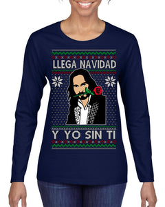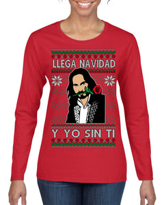 Llega Navidad Y Yo Sin Ti Christmas Is Coming Marco Ugly Christmas Sweater Womens Graphic Long Sleeve T-Shirt
