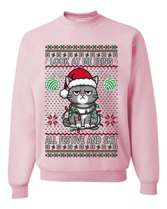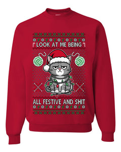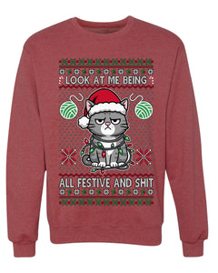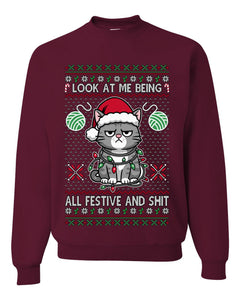 Look At Me Being All Festive And Shit, Unisex Ugly Christmas Sweater, Crewneck Sweatshirts