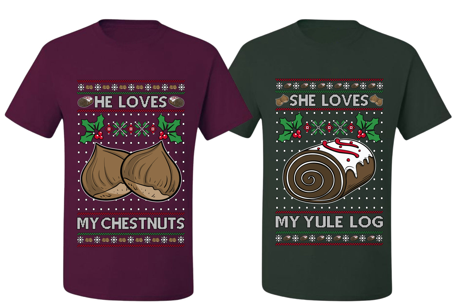 Love My Chestnuts Love My Yule Log Sweater Girlfriend Boyfriend Gift His and Hers Matching Ugly Christmas Couple T-Shirt