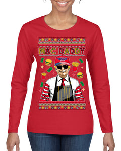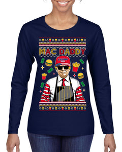 Mac Daddy Funny Viral Trump Meme Fast Food Fries Burgers Ugly Christmas Sweater Womens Graphic Long Sleeve T-Shirt