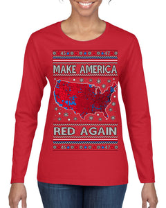 Make America Red Again USA Map Trump 2024 MAGA Ugly Christmas Sweater Womens Graphic Long Sleeve T-Shirt