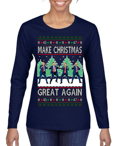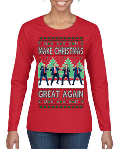 Make Christmas Great Again Shimmy Dance USA President Ugly Christmas Sweater Womens Graphic Long Sleeve T-Shirt