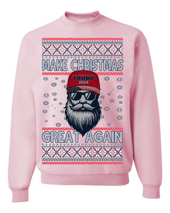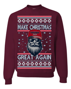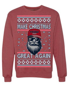 Make Christmas Great Again Trump Santa Claus 2024 MAGA, Donald Trump JD Vance GOP Republican Ugly Christmas Sweater Crewneck Sweatshirt