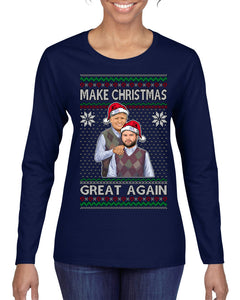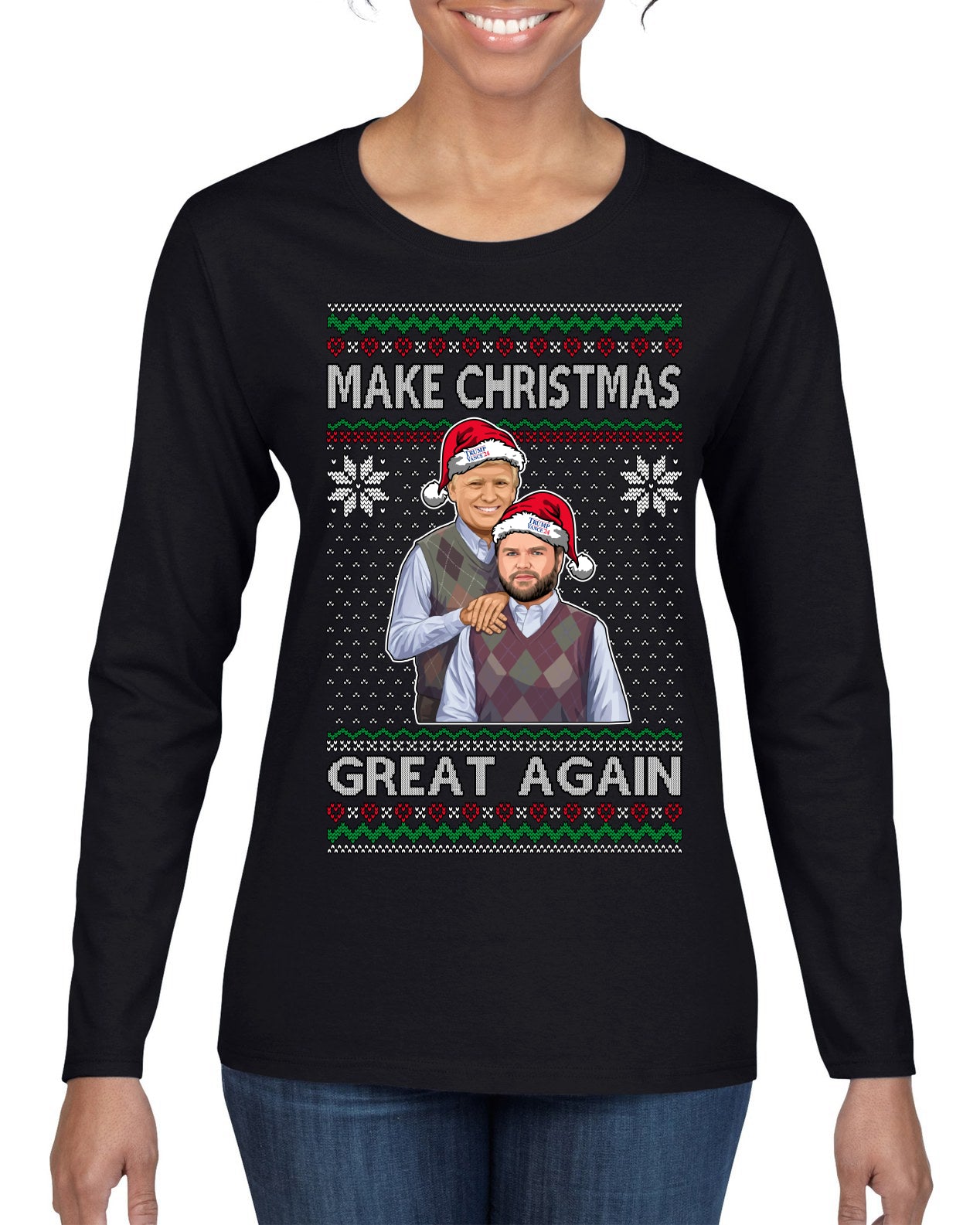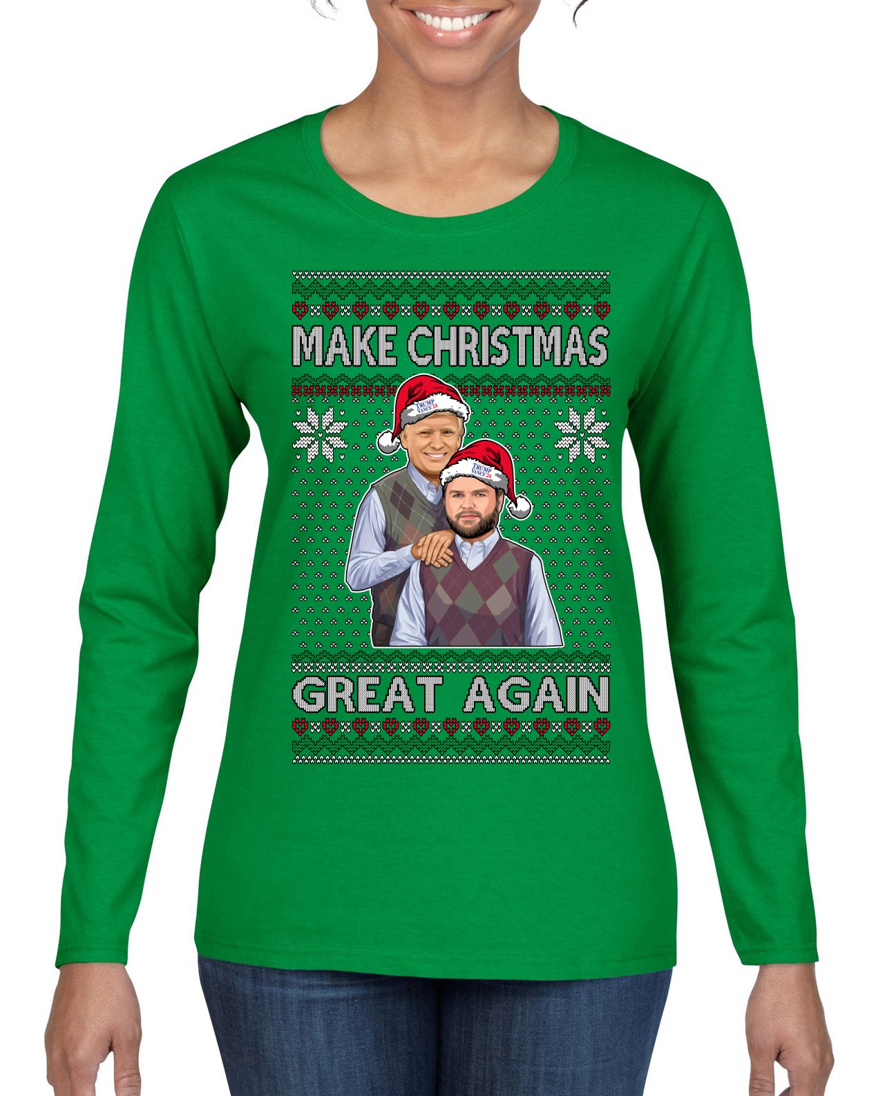 Make Christmas Great Again Trump Vance 2024 Movie Parody Ugly Christmas Sweater Womens Graphic Long Sleeve T-Shirt