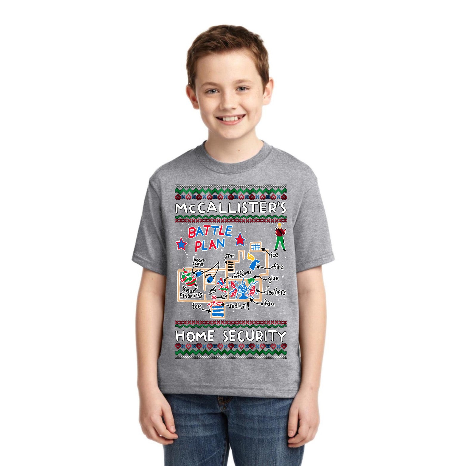 McCallister's Home Security Battle Plan Alone Kevin Christmas Unisex Boys Girls Graphic Youth T-Shirt