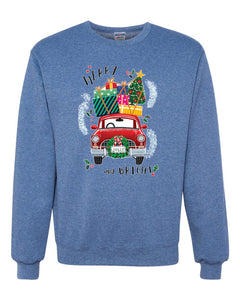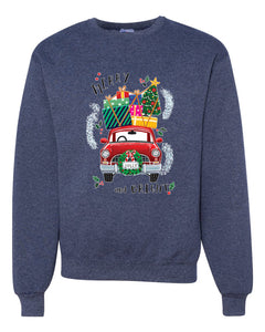 Merry and Bright Red Car Merry Christmas Unisex Crewneck Graphic Sweatshirt