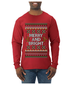 Merry And Bright, Ugly Christmas Sweater Unisex Mens Long Sleeve Shirt