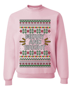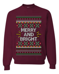 Merry And Bright, Unisex Ugly Christmas Sweater Crewneck Sweatshirts