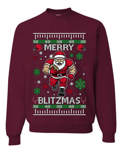 Merry Blitzmas, Football Christmas Sweater Design, Unisex Ugly Christmas Sweater Crewneck Sweatshirts