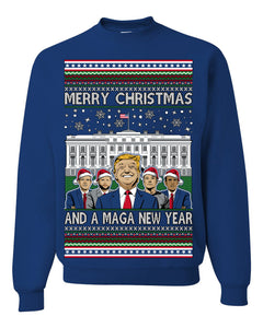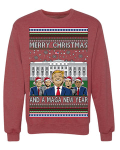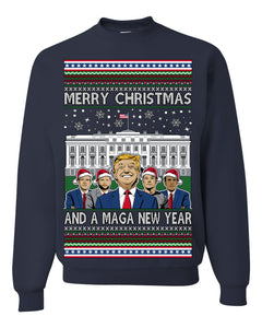 Merry Christmas and a MAGA New Year 2025 Ugly Christmas Sweater Crewneck Sweatshirts