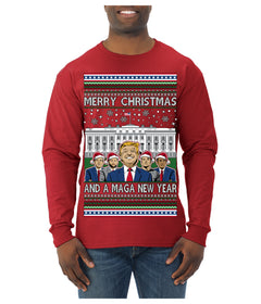 Merry Christmas and a MAGA New Year 2025 Ugly Christmas Sweater Mens Long Sleeve Shirt
