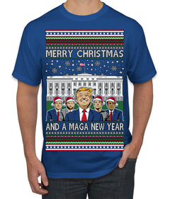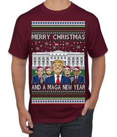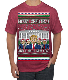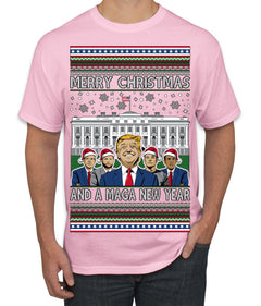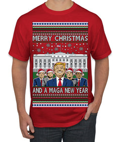 Merry Christmas and a MAGA New Year 2025 Ugly Christmas Sweater Men's T-Shirt