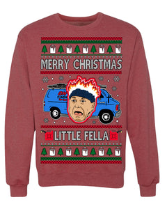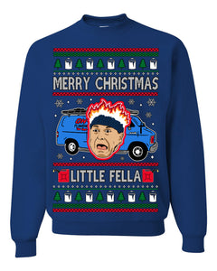 Merry Christmas Little Fella Funny 90s Harry Movie Quote Ugly Christmas Sweater Crewneck Sweatshirt