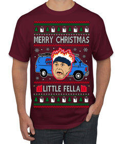 Merry Christmas Little Fella Funny 90s Harry Movie Quote Ugly Christmas Sweater Men's T-Shirt