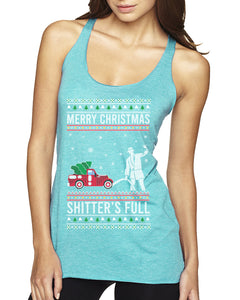 Merry Christmas Shitter's Full Christmas Vacation Ugly Christmas Sweater Tri-Blend Racerback Tank Top