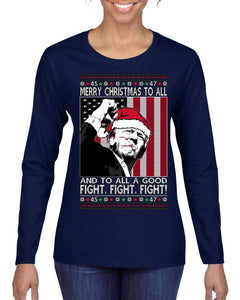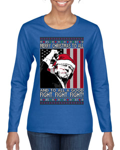 Merry Christmas to All a Good Fight | Santa Donald Trump Ugly Christmas Sweater Womens Graphic Long Sleeve T-Shirt