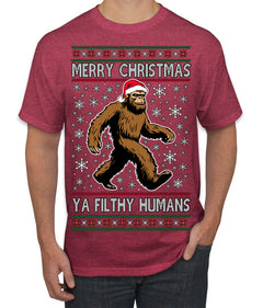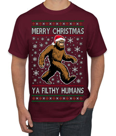 Merry Christmas Ya Filthy Humans Funny Sasquatch Bigfoot Ugly Christmas Sweater Men's T-Shirt
