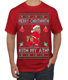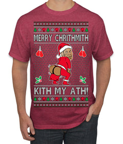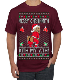 Merry Chrithmith Kith My Ath, Funny Butt Dancing, Viral Kiss My Ass Boxing Fight Meme, Men Women Ugly Christmas Sweater Men's T-Shirt