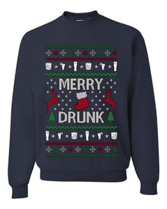 Merry Drunk, Unisex Ugly Christmas Sweater Crewneck Sweatshirts