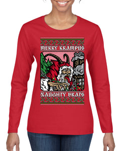 Merry Krampus Naughty Brats | Funny Ugly Christmas Sweater Womens Graphic Long Sleeve T-Shirt