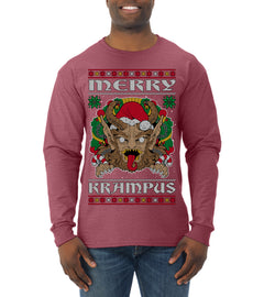 Merry Krampus Santa Folklore Figure Horror Ugly Christmas Sweater Mens Long Sleeve Shirt