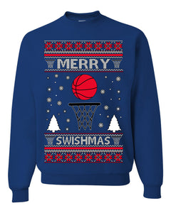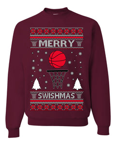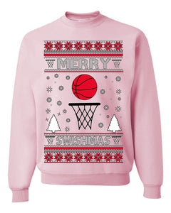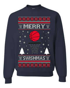 Merry Swishmas Basketball Sports Ugly Christmas Sweater Crewneck Sweatshirt