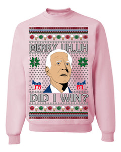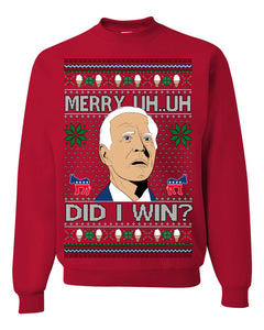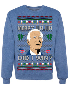 Merry Uh Did I Win? Funny Confused Joe Biden Election 2024 Ugly Christmas Sweater Crewneck Sweatshirt