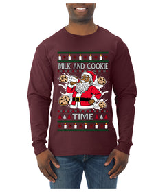 Milk And Cookie Time Christmas Sweater, Ugly Christmas Sweater Mens Long Sleeve Shirt