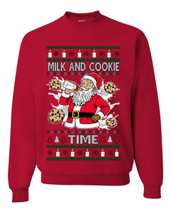 Milk And Cookie Time, Unisex Ugly Christmas Sweater, Crewneck Sweatshirts