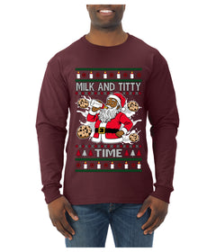 Milk And Titty Time Christmas Sweater, Ugly Christmas Sweater Mens Long Sleeve Shirt