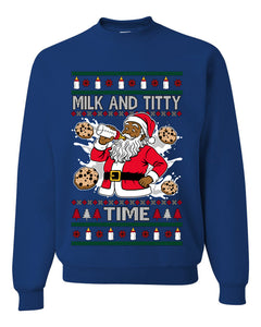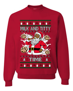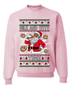 Milk And Titty Time Christmas Sweater, Unisex Ugly Christmas Crewneck Sweatshirts