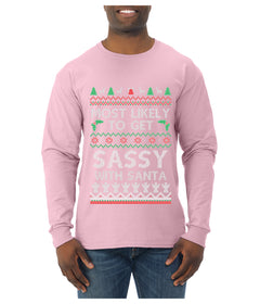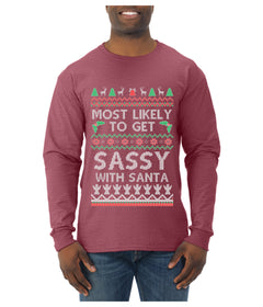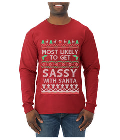 Most Likely To Get Sassy With Santa, Ugly Christmas Sweater Unisex Mens Long Sleeve Shirt