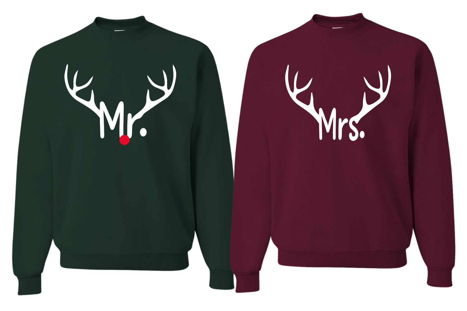 Mr Mrs Reindeer Red Nose, Funny Classic Xmas Couples Sweatshirt Ugly Christmas Matching Couple Crewneck Sweater Crewneck Sweatshirt