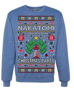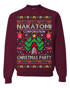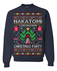 Nakatomi Corporation Christmas Party 1988 Plaza Logo, Classic Die Hard McClane 80s Xmas Movie Quote Ugly Christmas Sweater Crewneck Sweatshirt