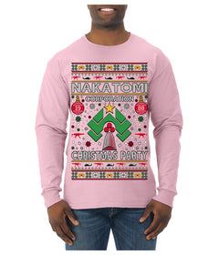 Nakatomi Corporation Christmas Party 1988 Plaza Logo, Classic Die Hard McClane 80s Xmas Movie Quote Ugly Christmas Sweater Mens Long Sleeve Shirt