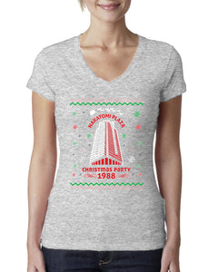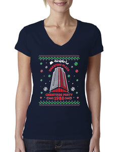 Nakatomi Plaza Christmas Party 1988 Ugly Christmas Sweater Womens Junior Fit V-Neck Tee
