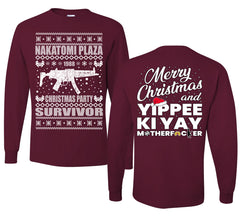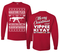 Nakatomi Plaza Christmas Party Survivor 1988 Ugly Christmas Front and Back Sweater Mens Long Sleeve Shirt