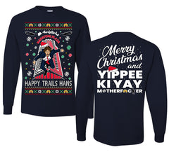 Nakatomi Plaza Happy Trails Hans Ugly Christmas Front and Back Sweater Mens Long Sleeve Shirt