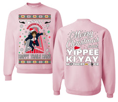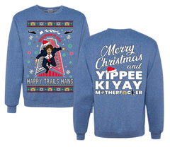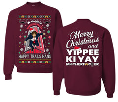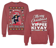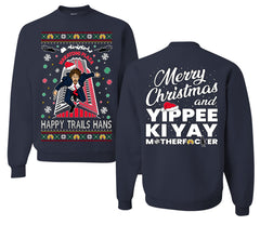 Nakatomi Plaza Happy Trails Hans Ugly Christmas Front and Back Sweater Unisex Crewneck Sweatshirt