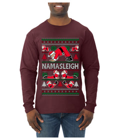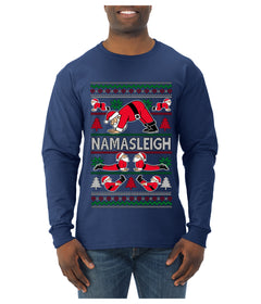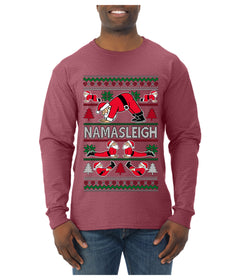 Namasleigh, Namaste Yoga Santa Claus, Ugly Christmas Sweater Unisex Mens Long Sleeve Shirt
