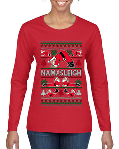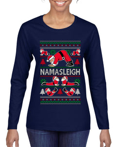 Namasleigh, Namaste Yoga Santa Claus, Ugly Christmas Sweater Womens Graphic Long Sleeve T-Shirt