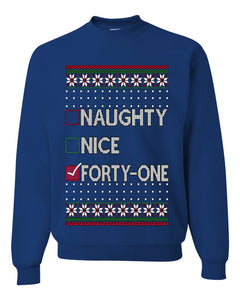 Naughty Nice 41, Simple List, Ugly Christmas Unisex Sweater, Funny Meme, Crewneck Sweatshirts