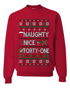 Naughty Nice 41, Ugly Christmas Unisex Sweater List, Extra Festive, Crewneck Sweatshirts
