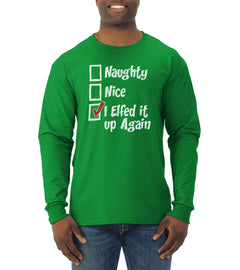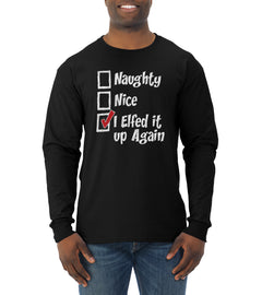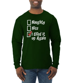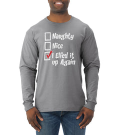 Naughty Nice I Elfed It Up Again Christmas Mens Long Sleeve Shirt