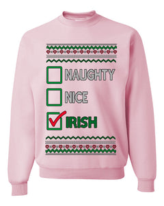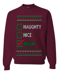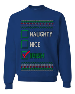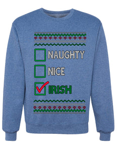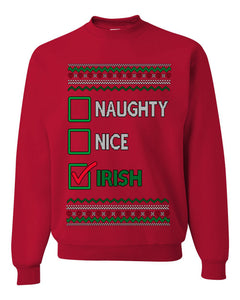 Naughty Nice, Irish, Irish Christmas, Unisex Ugly Christmas Sweater, Crewneck Sweatshirts