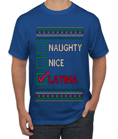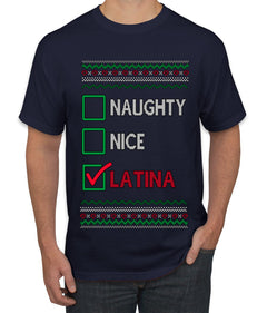 Naughty Nice, Latina, Latin American Humor Christmas Design, Ugly Christmas Sweater Unisex Men's T-Shirt