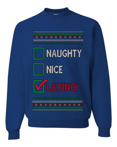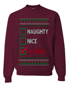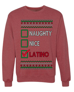 Naughty Nice, Latino, Latin American Humor Christmas Design, Unisex Ugly Christmas Sweater, Crewneck Sweatshirts