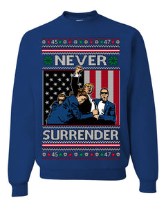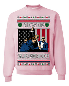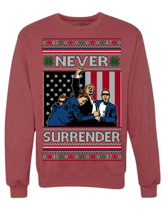 Never Surrender Pro Donald Trump Fight Fist Pump 2024 Ugly Christmas Sweater Crewneck Sweatshirt