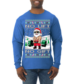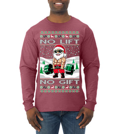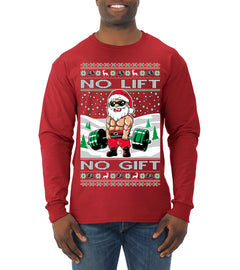 No Lift No Gift Fitness Workout Santa Ugly Christmas Sweater Mens Long Sleeve Shirt