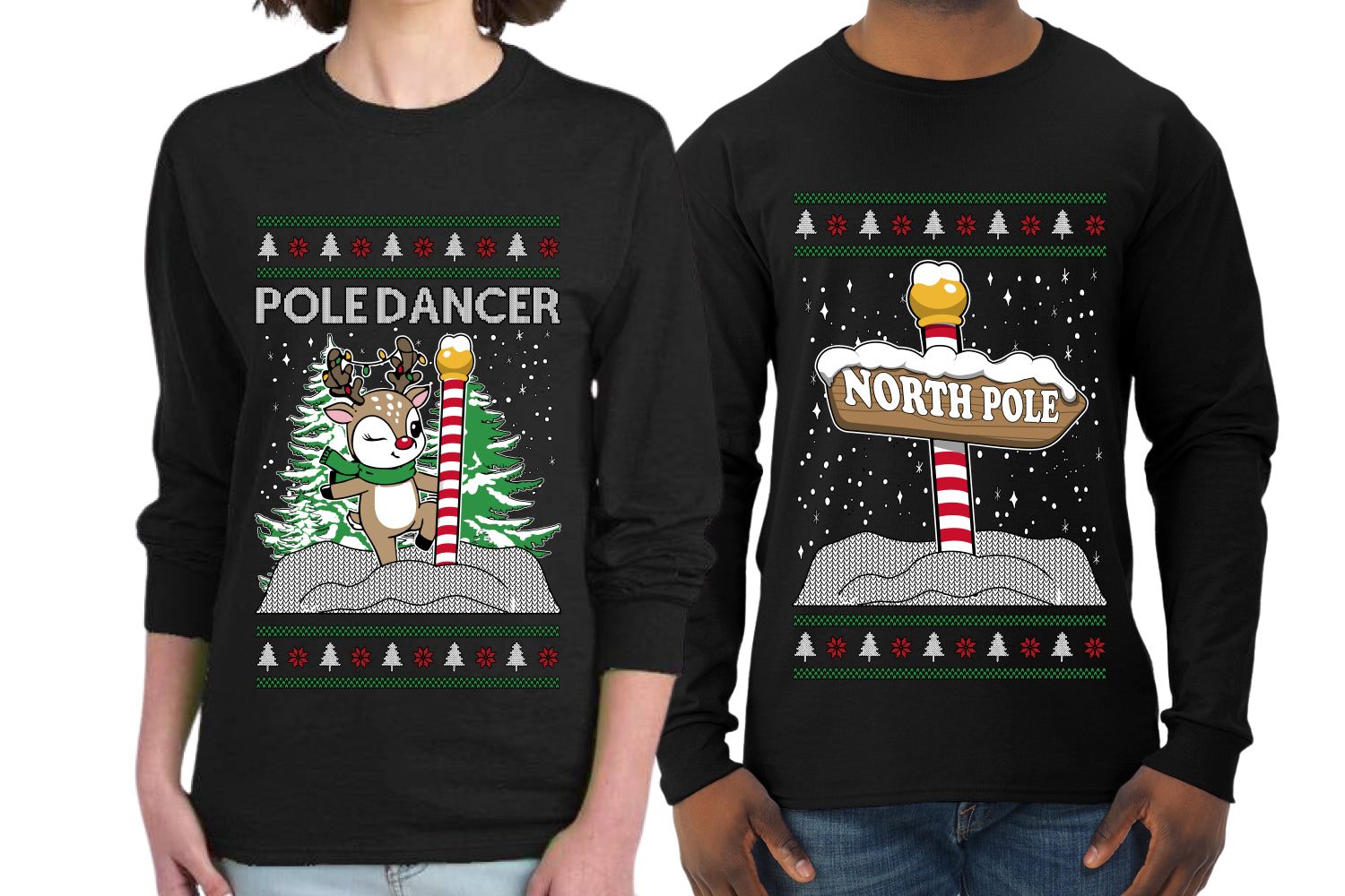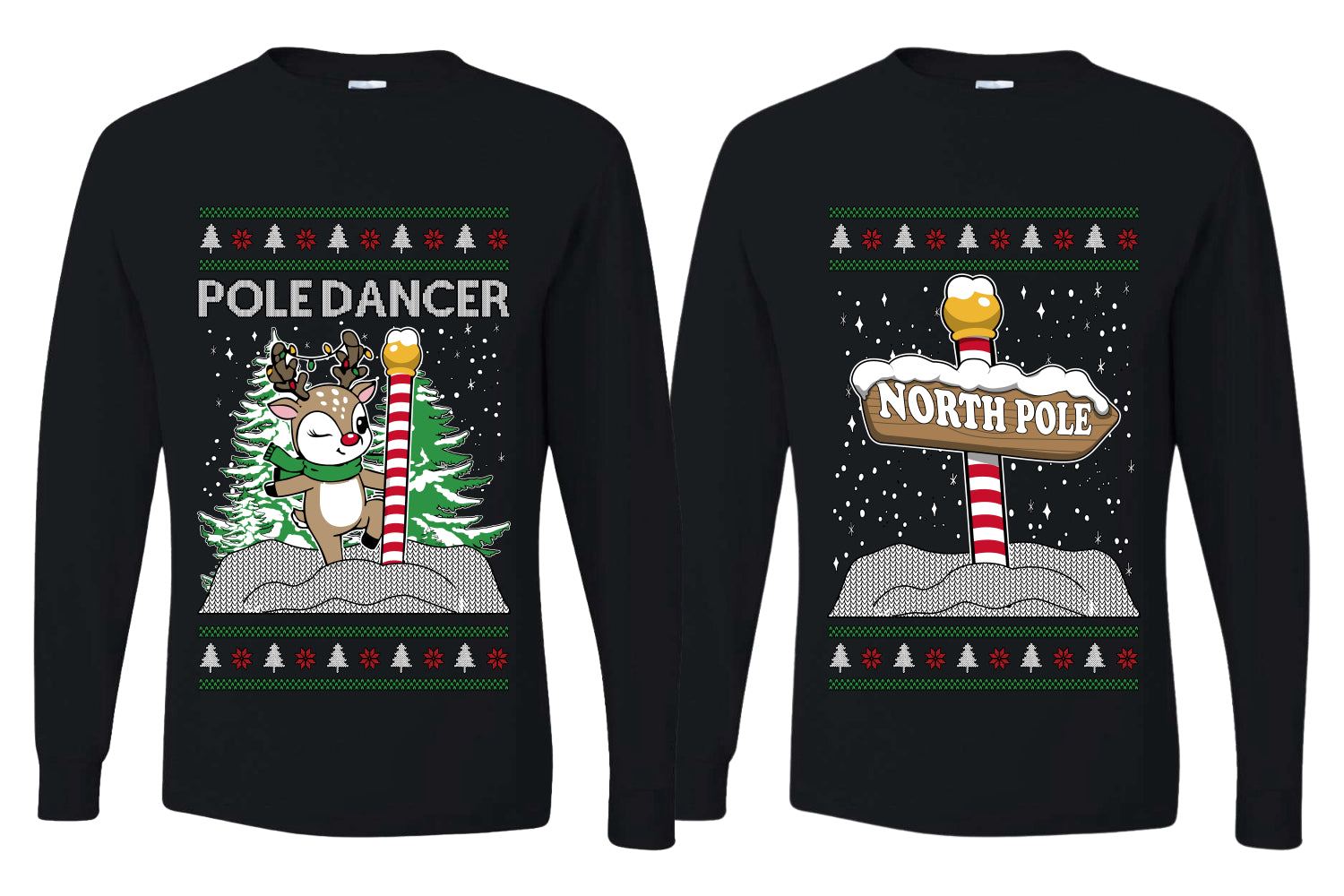 North Pole, Pole Dancer Sweater Girlfriend Boyfriend Gift His and Hers Matching Ugly Christmas Couple Long Sleeve Shirt